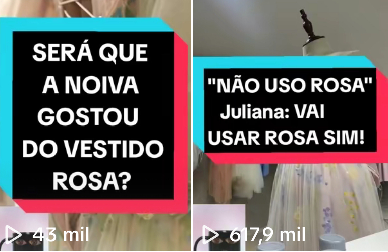 - O caso não foi isolado: o bordão “Ela fez o vestido rosa pra noiva que não queria rosa” foi repetido em outros posts e lives, criando um histórico contínuo de perseguição e reforço de imagem negativa.