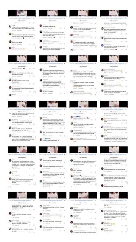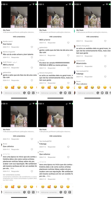 Logo no primeiro bloco de 390 comentários, nota-se que a edição e publicação do vídeo pela página “Vítimas da Estilista” funcionou como um gatilho para ataques diretos à minha honra, reputação e capacidade profissional. Os comentários não se limitam a críticas construtivas, mas partem para ofensas pessoais, escárnio, insinuações maliciosas e acusações sem qualquer prova.