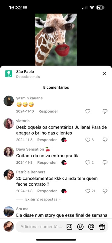 - “Desbloqueia os comentários Juliana! Para de apagar o brilho das clientes”