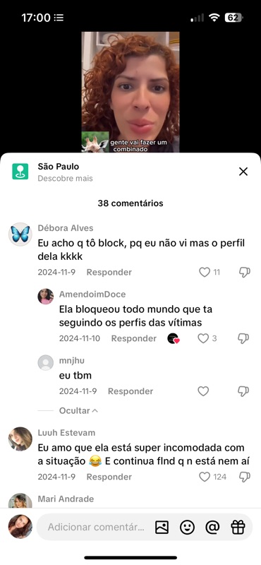 - “Ela bloqueou todo mundo que tá seguindo os perfis das vítimas”