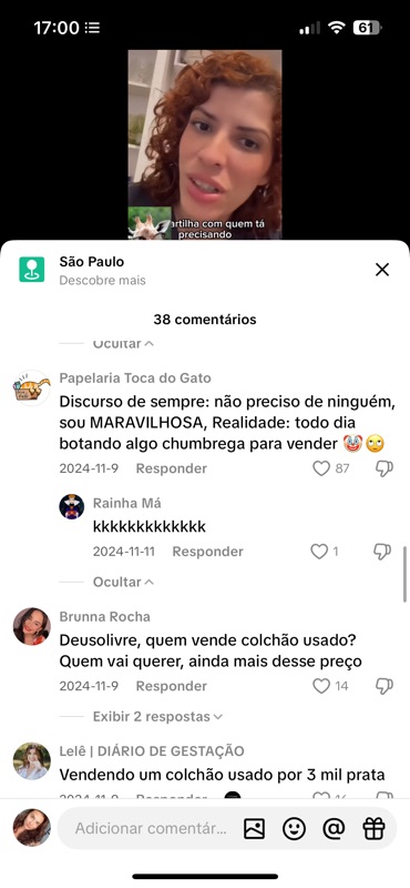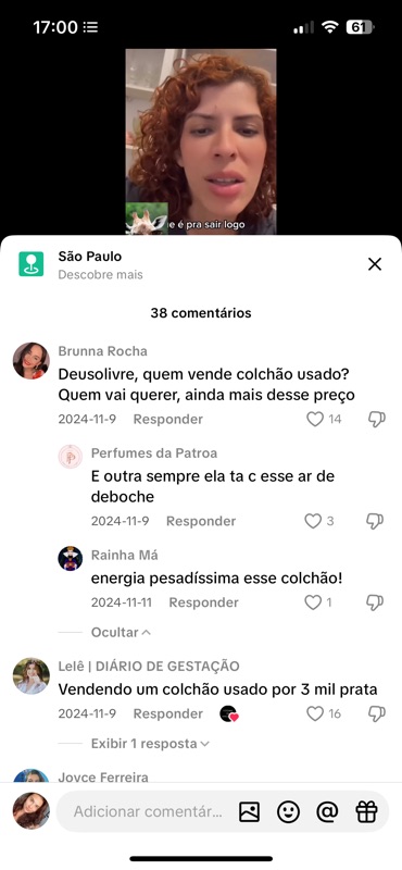Esse post ainda deu margem para um tipo de comentário ainda mais absurdo: a suspeita de que eu estaria vendendo meus móveis para “fugir do país”. É o nível máximo da distorção e da malícia: transformar um simples anúncio de venda de colchão em uma insinuação criminosa.