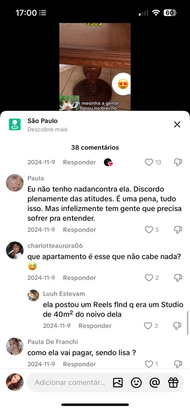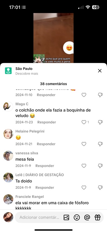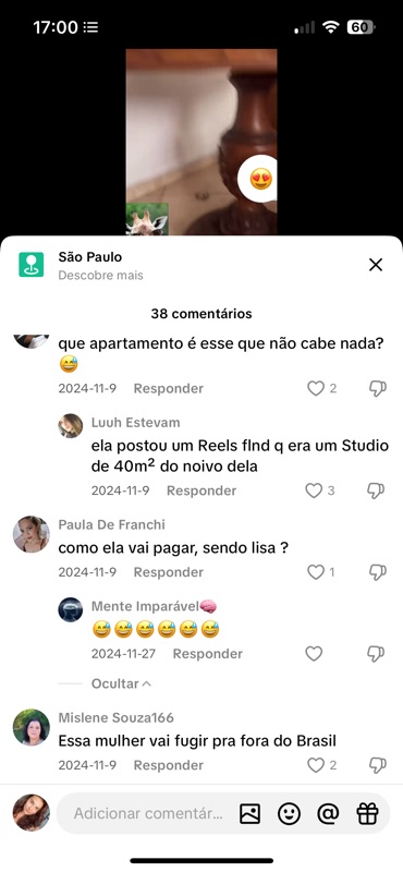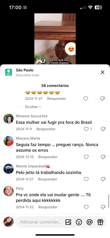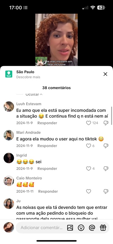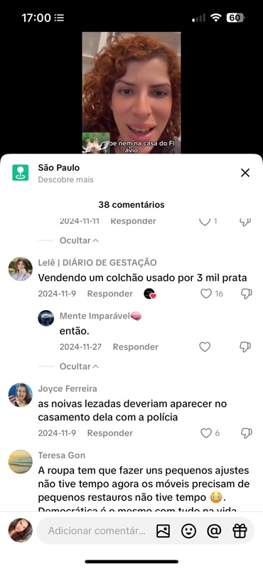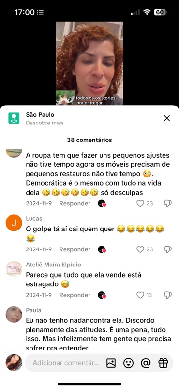 Os comentários variam entre deboche, difamação, calúnia, injúria e até injúria sexual, além de acusações inventadas de golpe e fuga do país, incitação para que noivas acionem a polícia e bloqueiem meu passaporte, e humilhações públicas relacionadas à minha vida pessoal e financeira. Tudo isso é consequência direta da manipulação feita pelo perfil.