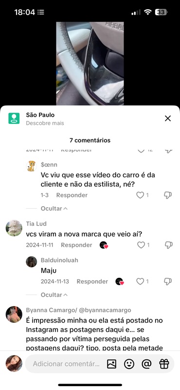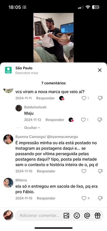 Ainda que os comentários tenham sido poucos, eles revelam a intenção do perfil: transformar qualquer detalhe da minha vida, mesmo os mais íntimos, em combustível para perseguição e difamação.