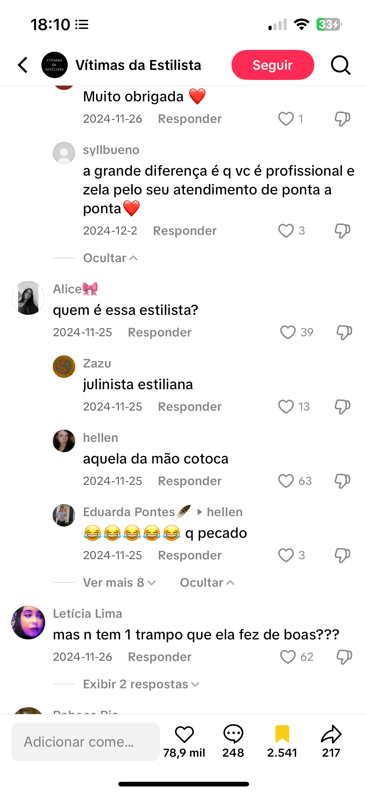 Comentário: “Mulheeeerr kkkkkkkk só rindo. Essa não é estilista, é piada pronta.”