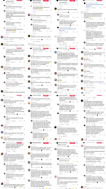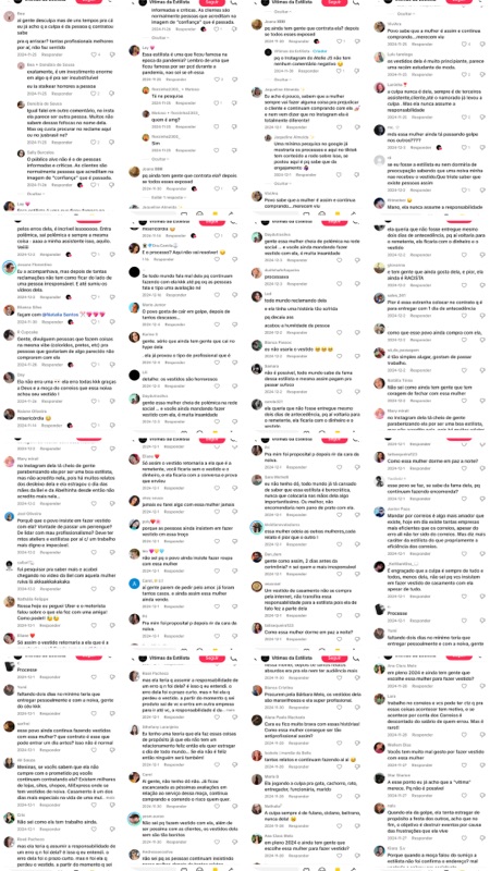 O Post 237 é mais um exemplo claro de como o perfil “Vítimas da Estilista” se baseia em relatos sem provas para alimentar o ódio coletivo. Em nenhum momento são apresentados prints de conversa, contrato ou comprovante de envio — apenas um depoimento isolado, distorcido e sem lastro documental. Mesmo assim, isso foi suficiente para gerar mais de 200 comentários de difamação, calúnia, injúria, capacitismo e incitação de perseguição.