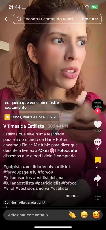 No dia 11 de novembro de 2024, o perfil “Vítimas da Estilista” publicou um vídeo com a seguinte legenda: