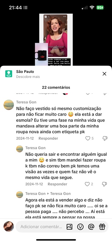 - “Já ela estilista não usa as próprias criações no dia a dia… comprei de brecho…”