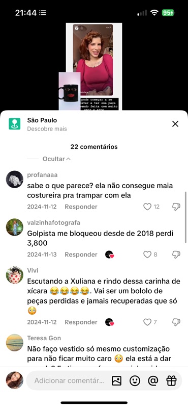 O Post 239 da página “Vítimas da Estilista” foi publicado no dia 11 de novembro de 2024.