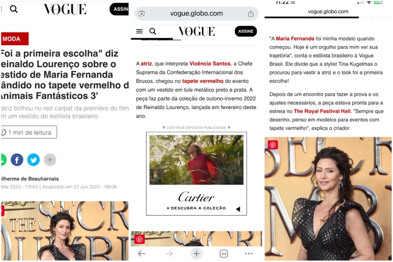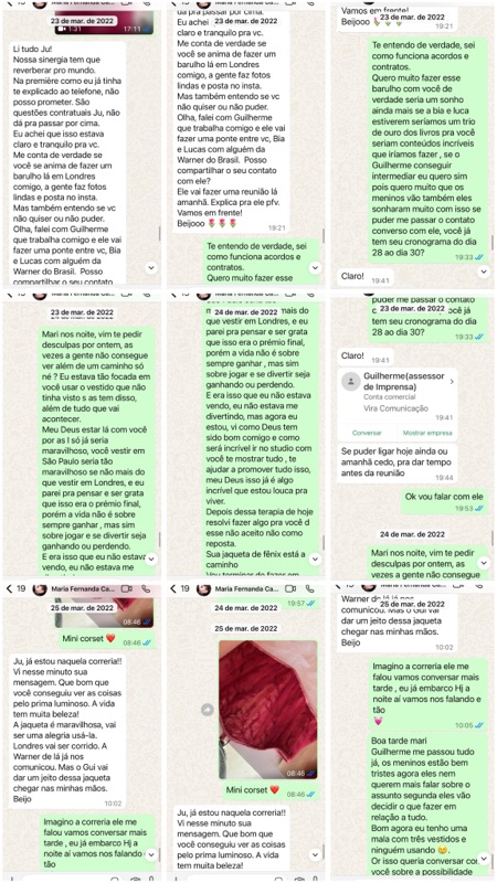 Depois que enviei aquela mensagem para a Maria Fernanda, explicando que precisava de um posicionamento dela por conta da imprensa, ela me respondeu com todo carinho do mundo. Perguntou, inclusive, se eu toparia “fazer um barulho” com ela em Londres e garantiu que, caso não conseguisse usar o vestido lá, ele seria usado na pré-estreia de São Paulo – algo que o próprio assessor dela também havia confirmado para mim na época.