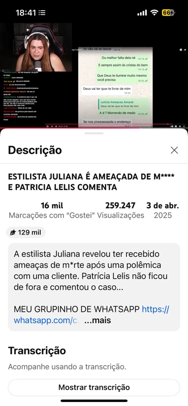 O vídeo foi publicado por uma criadora de conteúdo e inclui um bloco de participação da influenciadora Patrícia Lelis.