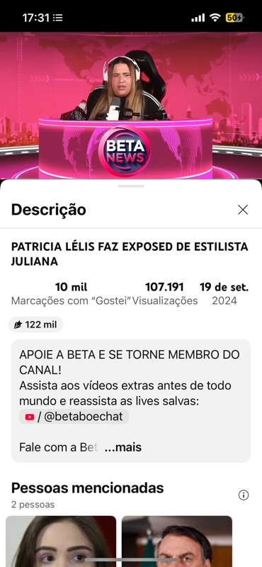 Live publicada em 19 de setembro de 2024 com mais de 107 mil visualizações, sendo a primeira associação pública de Beta com Patrícia Lélis. No vídeo, Beta lê uma matéria sensacionalista sobre Patrícia, reproduz na íntegra as acusações feitas contra Juliana e insere comentários pessoais que reforçam a narrativa de má conduta profissional.