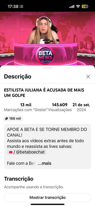 Nesta live, Beta News comenta novamente o caso envolvendo Patrícia Lélis, introduzindo novas acusações e reproduzindo sem filtro as falas de um estilista aliado da Patrícia.
