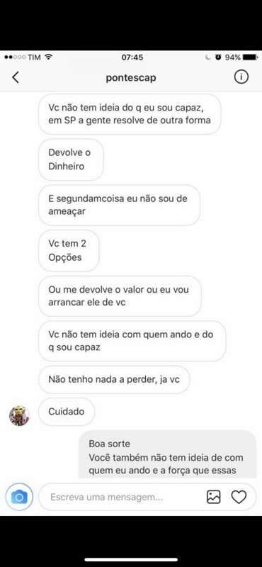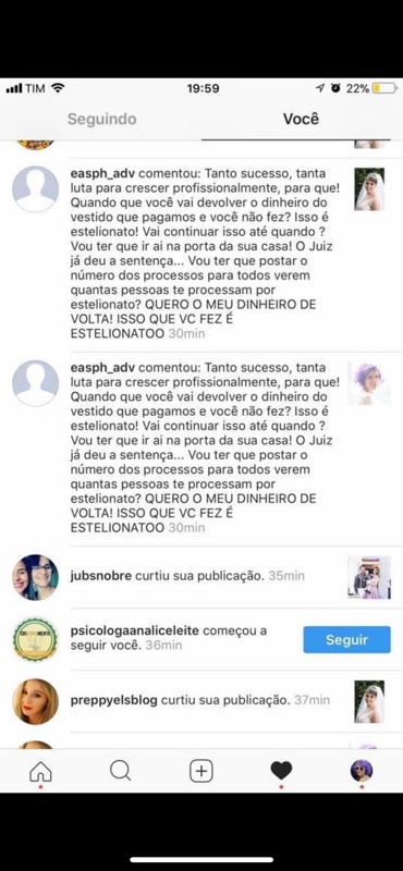 - Várias mensagens tentando desqualificar você e sugerindo que nada acontece porque você não tem bens no nome.
