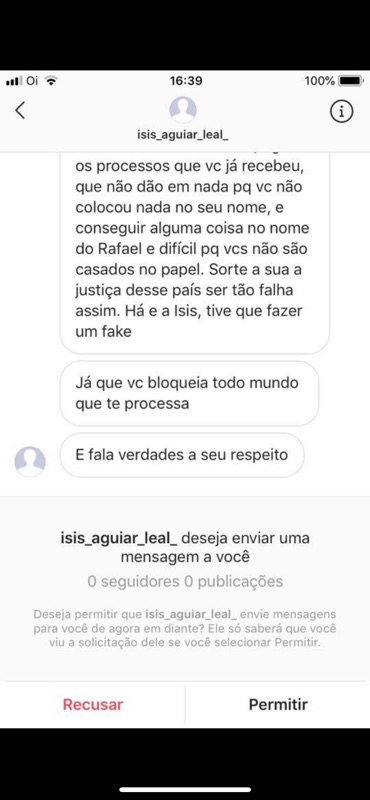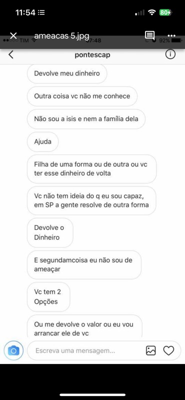 O caso não parou aí. Rafael, então noivo de Isis, passou anos me ameaçando e me perseguindo ativamente em redes sociais, usando perfis reais e fakes para me atacar, difamar e incitar campanhas de ódio. As mensagens e prints comprovam: foram inúmeras tentativas de intimidação pública, ameaças veladas e diretas, e uso constante de termos como “estelionatária” e “golpista” para me descredibilizar perante clientes, seguidores e imprensa. Chegaram a dar entrevistas para TV aberta e criar campanhas para prejudicar minha imagem, inclusive com postagens repetidas e organizadas para viralizar a difamação.